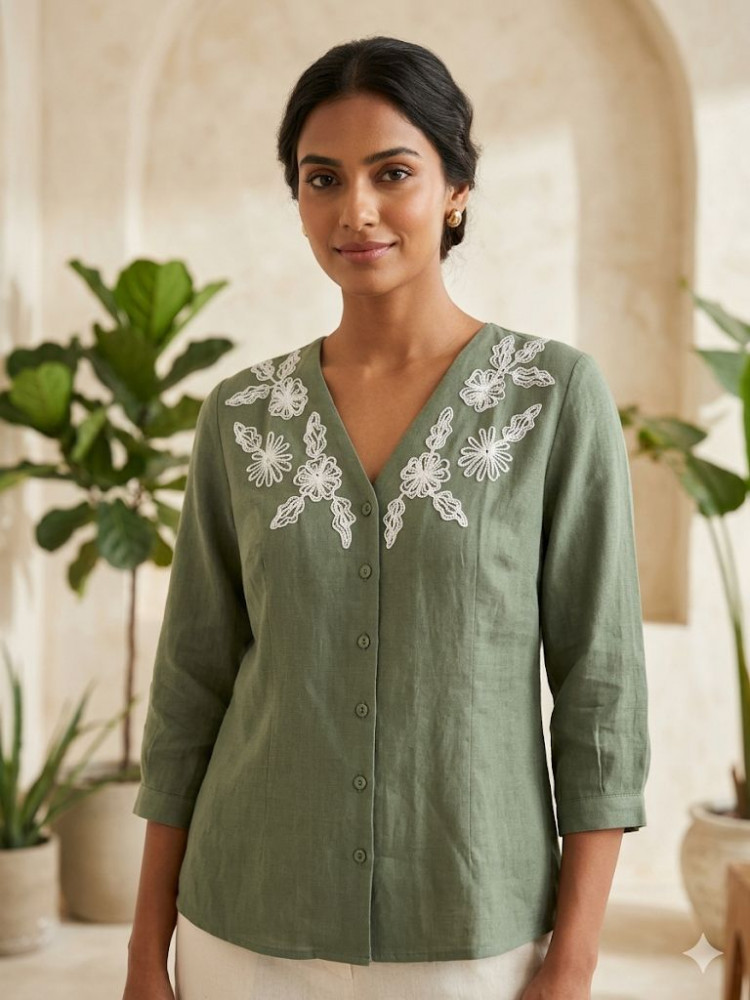 OLIVE GREEN LINEN TOP