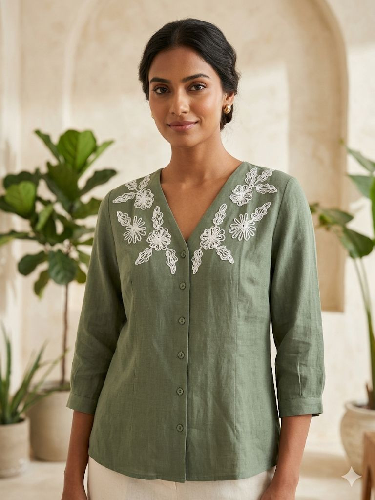 OLIVE GREEN LINEN TOP