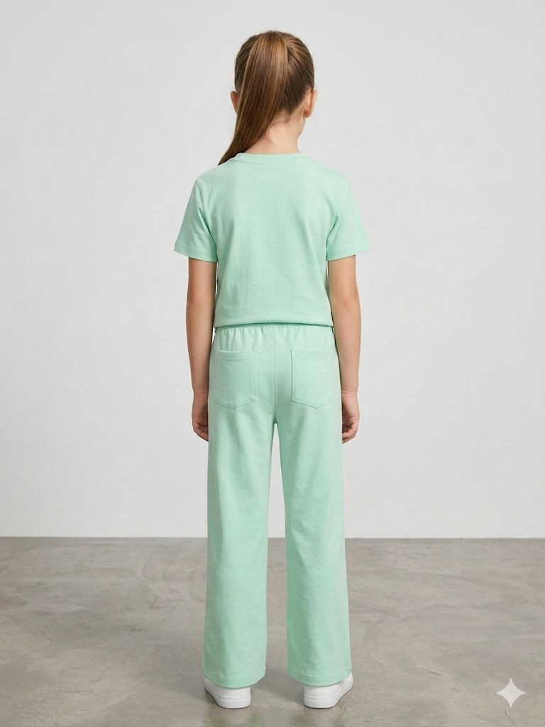 - Color & Fabric: The set is a matching pastel mint green (seafoam). The fabric appears to be a soft cotton or jersey blend, typical for comfortable casual wear.